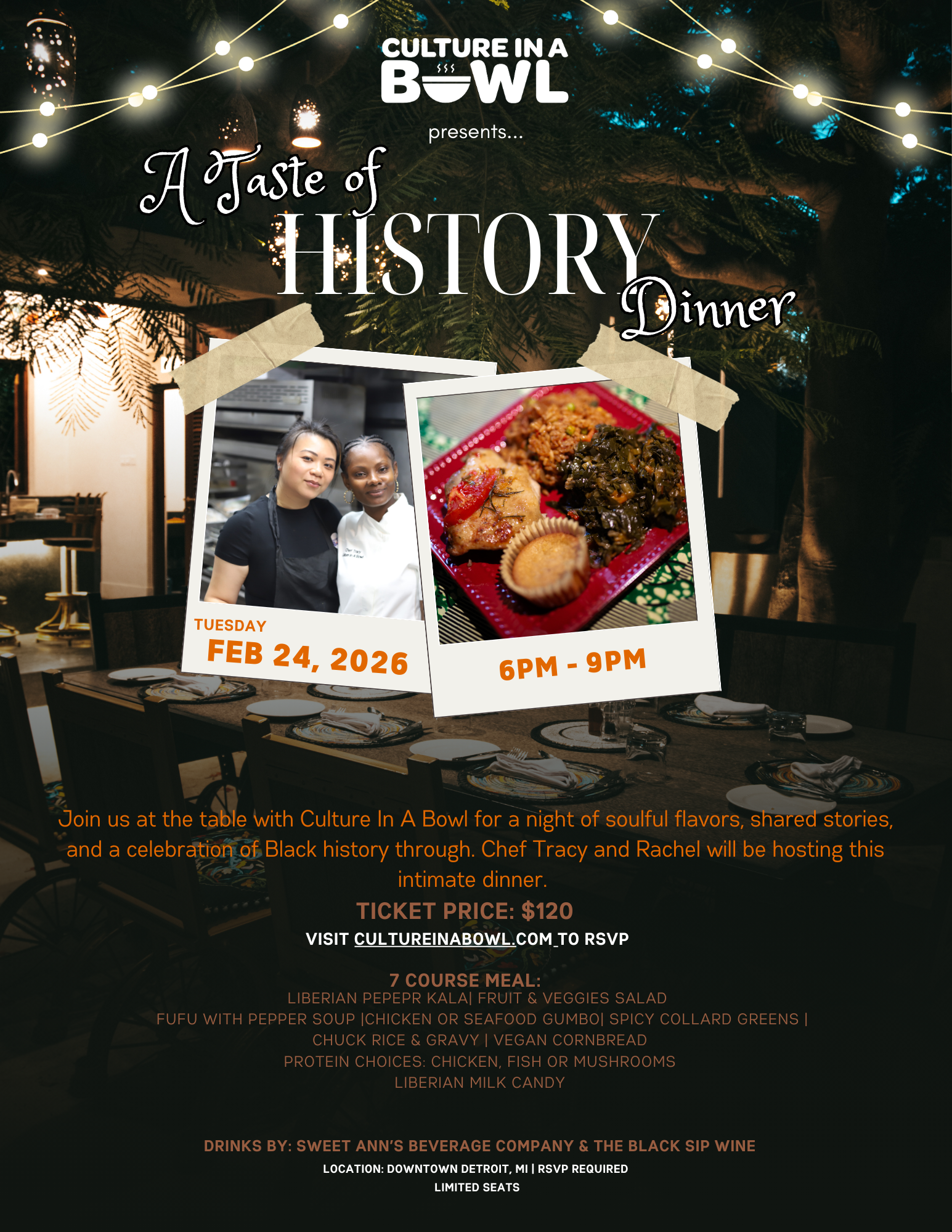 An intimate Black History Month dinner experience curated by Culture In A Bowl, celebrating African and African American cuisine through food, culture, and community.