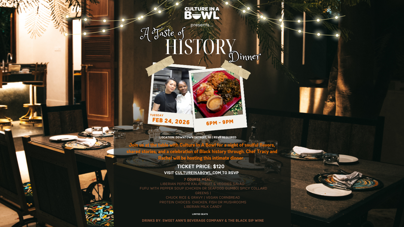 An intimate Black History Month dinner honoring African and African American flavors, culture, and legacy.